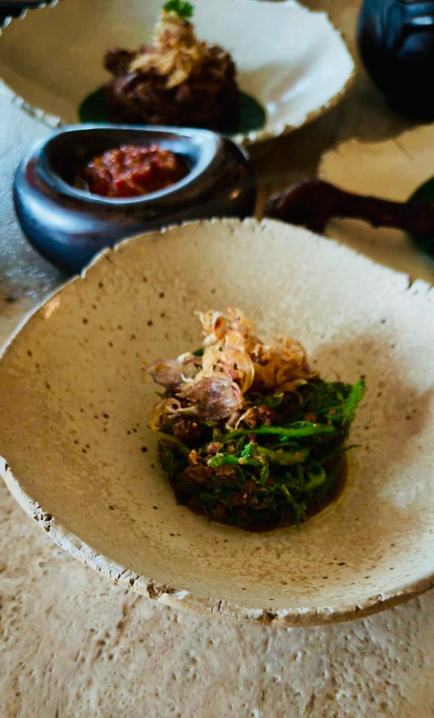 Urap is a rustic, vibrant Javanese salad made from lightly blanched vegetables — typically long beans, bean sprouts, cabbage, or spinach — tossed in freshly grated coconut that’s been seasoned with garlic, chili, shallots, and kaffir lime leaves.